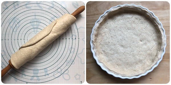 Set aside some of this dough to make the classic tart decoration and roll out the remaining dough with the rolling pin.