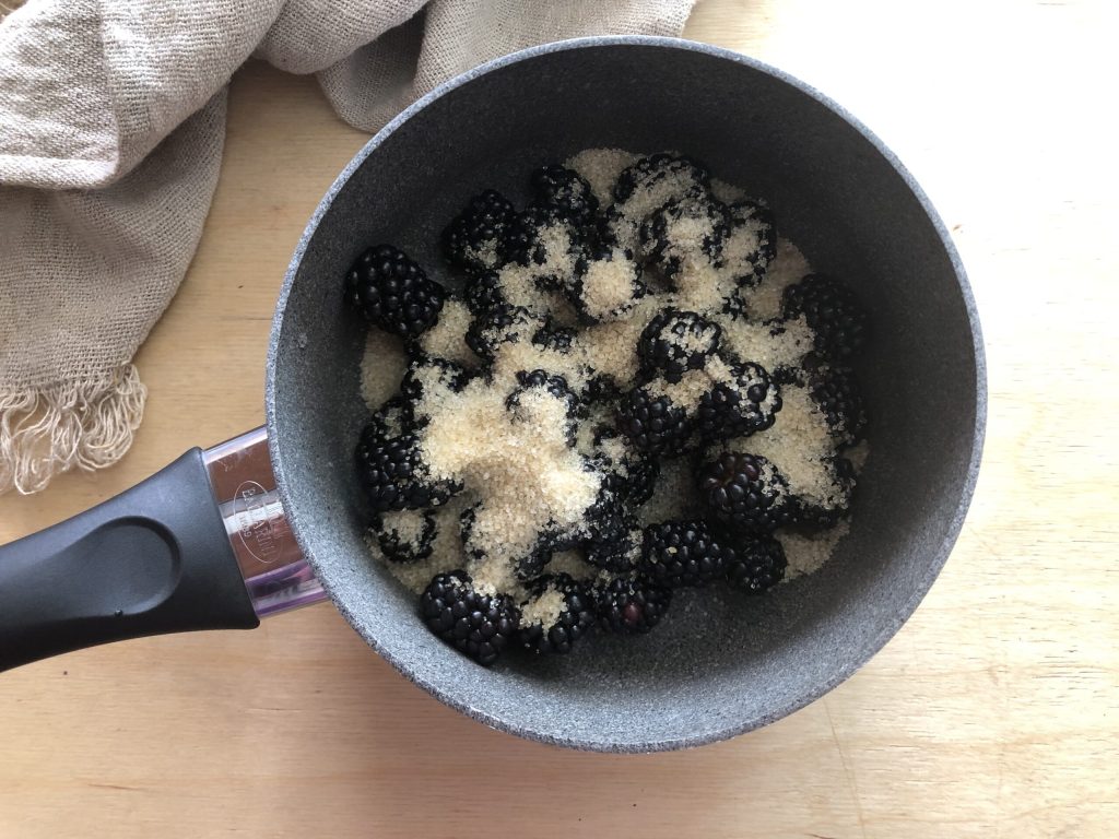 Wash the blackberries, then put them in a saucepan and add the brown sugar.