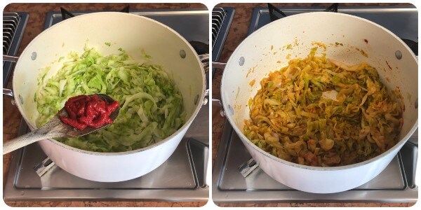 At this point, add a couple of tablespoons of tomato paste and mix well.