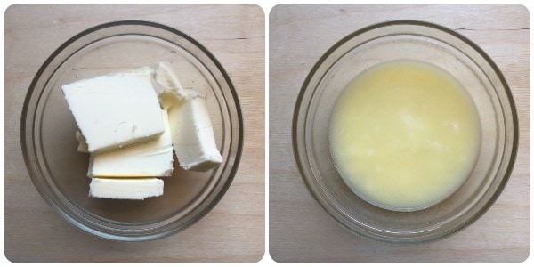 Meanwhile, put the butter in pieces into another small bowl and melt it in the microwave or in a double boiler. Let it cool.