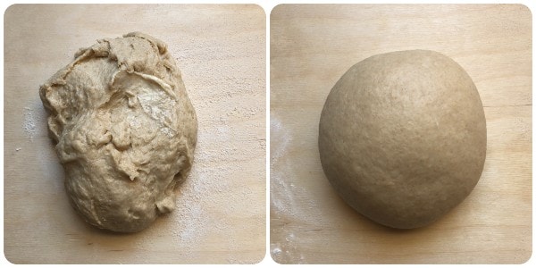 Transfer it to the floured work surface, work it a bit more with your hands, and shape it into a ball.