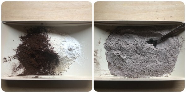 Measure the flour, cocoa powder, and baking powder and mix them.