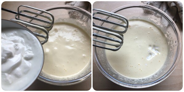 At this point, gradually add the dry ingredients by sifting them through a fine mesh sieve and incorporating them with a spatula.