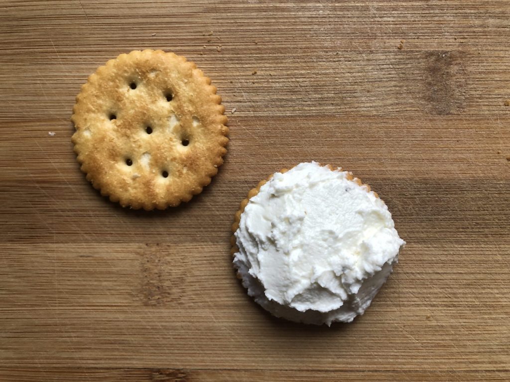 • Spread a bit of this cream on one cracker and cover it with a second cracker forming a sort of small sandwich.