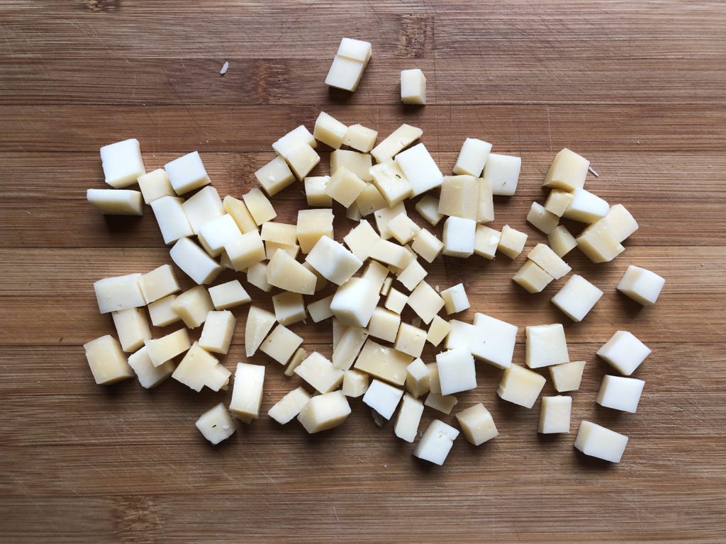 Meanwhile, cut the gouda and fontina into cubes. If you prefer, you can use just fontina.