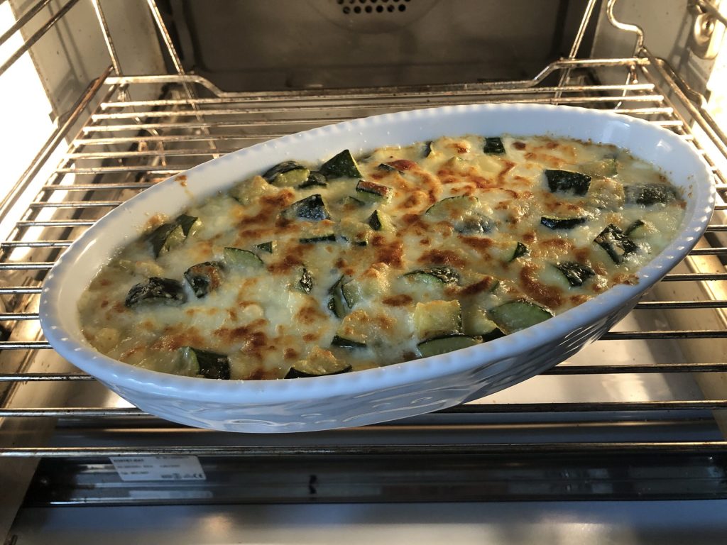 Bake the cheesy zucchini in a preheated static oven at 356°F for about ten minutes plus a few moments on the grill function: they should be golden and the cheeses perfectly melted at the end.