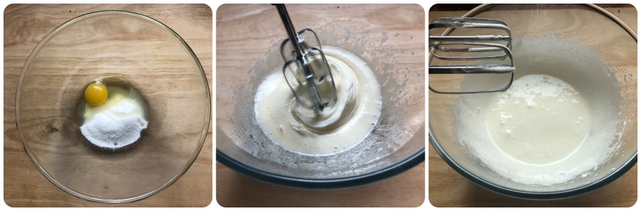 • In a large bowl, place the sugar and egg and beat them with electric whisks until you get a light and fluffy mixture.
