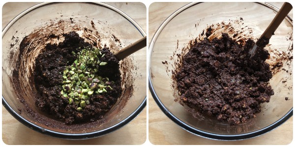 • Coarsely chop the pistachios. I recommend doing this with a knife because using a food processor might turn them into flour.