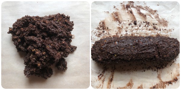 • Transfer the obtained mixture onto a sheet of parchment paper and shape it into the classic salami form.