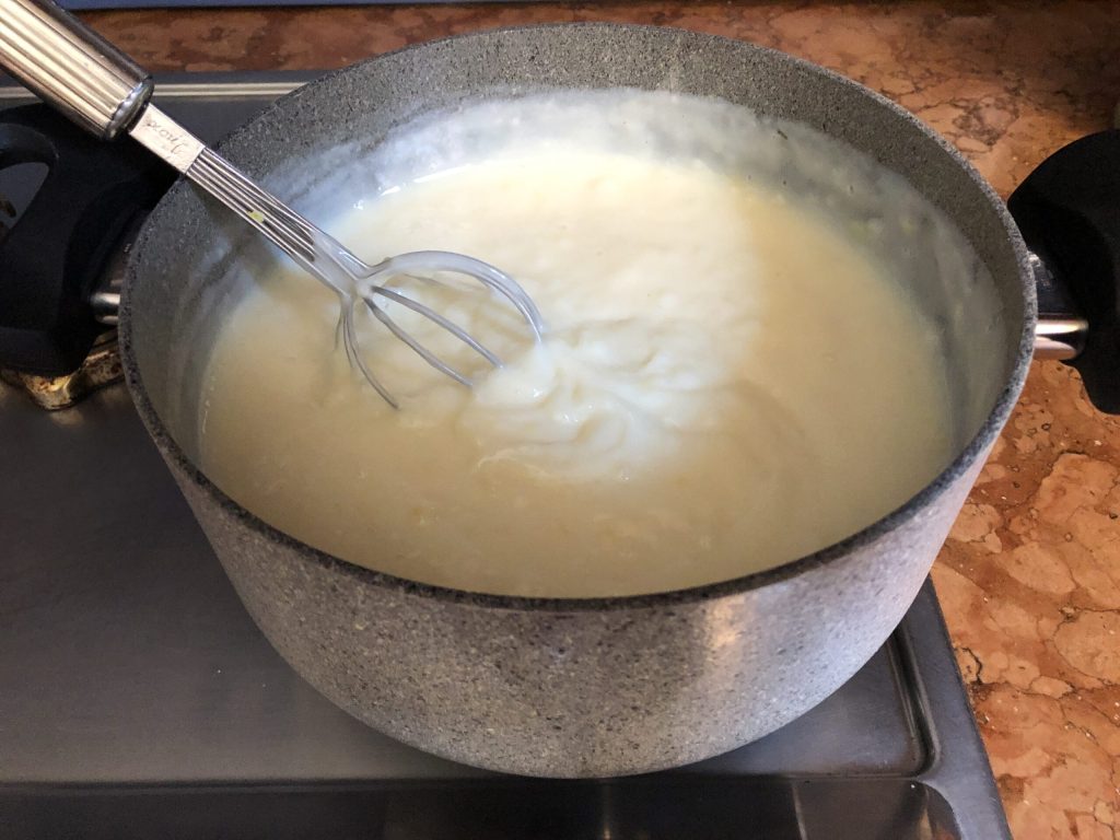 Cook over medium-low heat for about ten minutes, stirring continuously with the whisk: gradually the cream will begin to thicken.