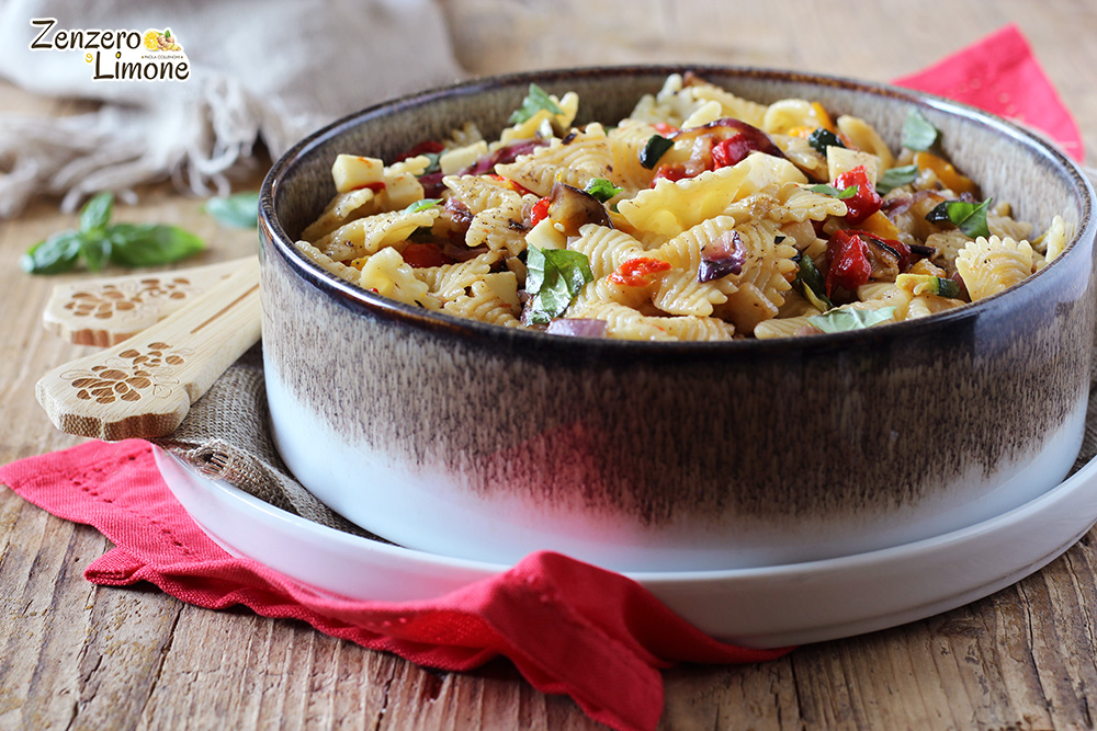 Today I present you a typically summer dish: a cold pasta with vegetables that can be prepared in advance and enjoyed even under the umbrella or at the office. It’s easy, though not very quick, and really very tasty. A pasta that allows us to rediscover the pleasure of genuine flavors.