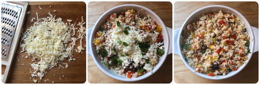 • Shred the scamorza cheese into julienne using a grater with large holes and add it to the other ingredients.