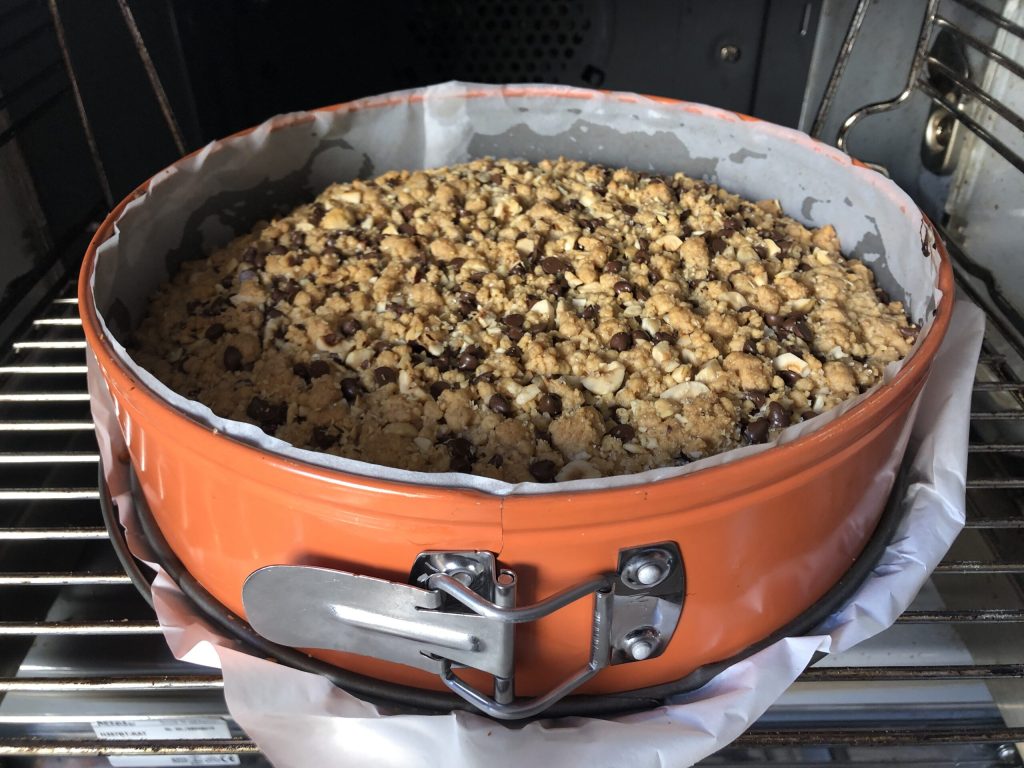 • At this point sprinkle the remaining crumbs of dough over the entire surface.