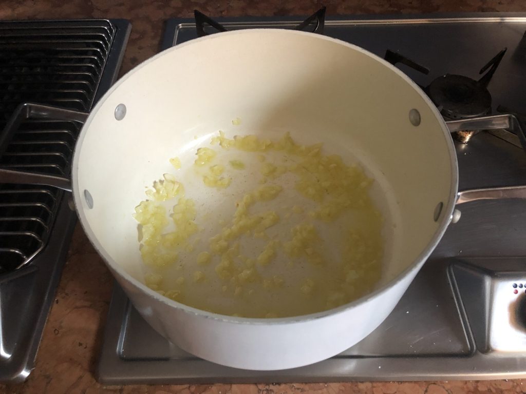 In a saucepan, heat a few tablespoons of oil and sauté the finely chopped onion.