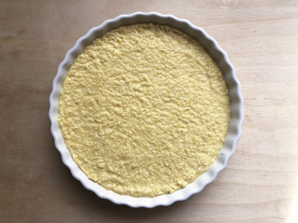 Pour the obtained cream into a 9.5-inch diameter cake pan previously buttered and floured or lined with parchment paper. Level it well.