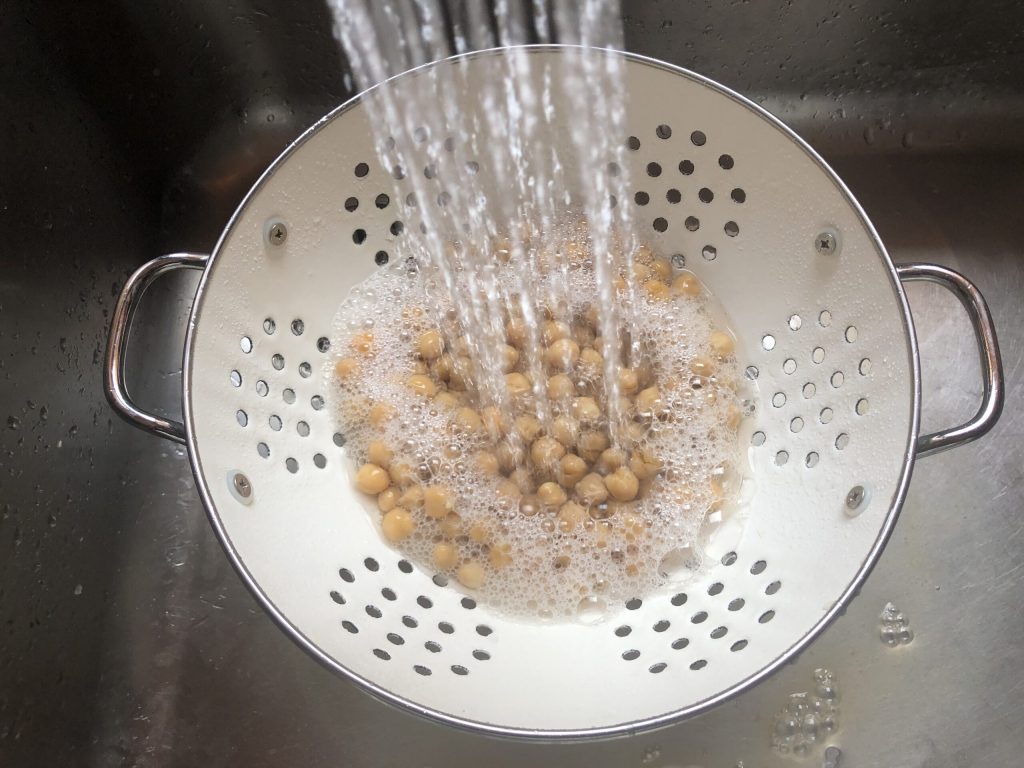 Drain the chickpeas from their preserving liquid and rinse them thoroughly under running water.