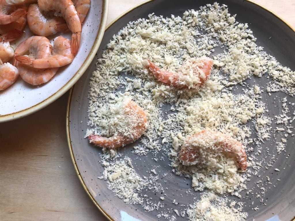 Then coat them in the panko breadcrumbs, pressing lightly to make it adhere well.