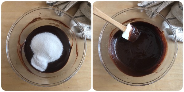 Once cooled, add the sugar and mix until completely absorbed by the chocolate.