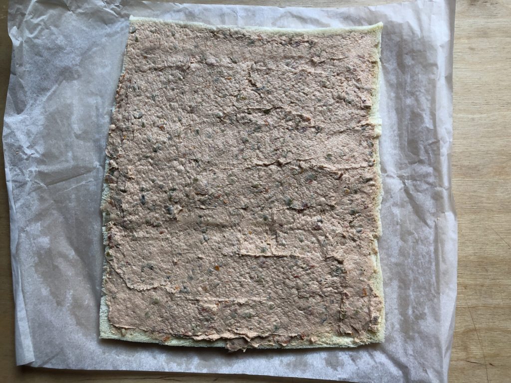 • Using the baking paper, roll the rectangle starting from the long side, then wrap the obtained roll with plastic wrap and tighten it well as if it were a candy. Transfer it to the refrigerator for at least 4 or 5 hours; better yet, for the whole night. The convenience, therefore, is that it can be prepared in advance.