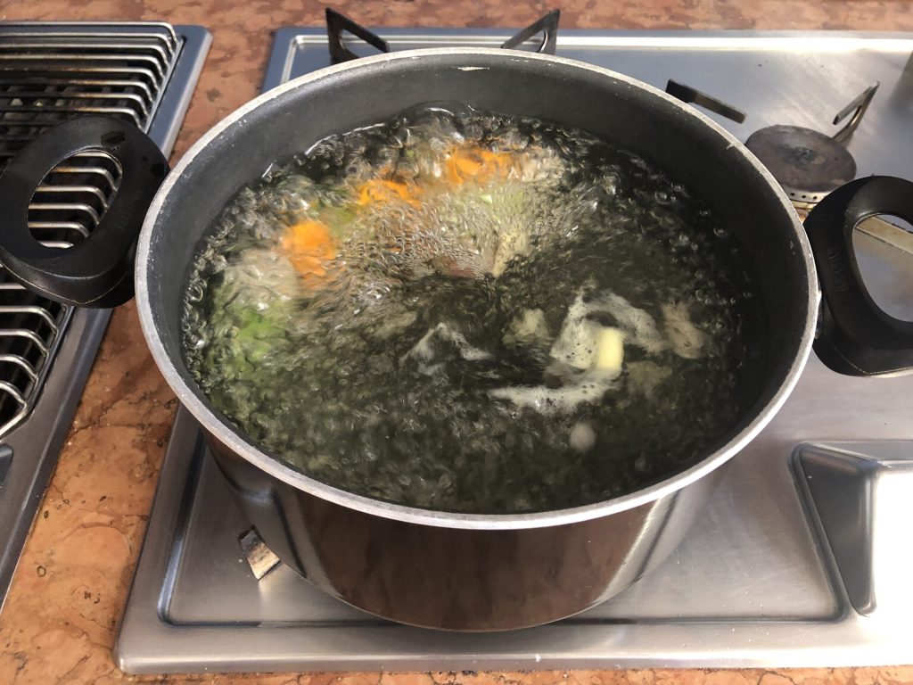 In the meantime, clean the chicken breast by removing the central bone, cartilage, and any fatty parts. When the water boils, immerse the meat and boil it for 15 minutes.