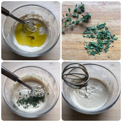 • Also add the oil and coarsely chopped marjoram. Mix everything well until you obtain a smooth batter without lumps.