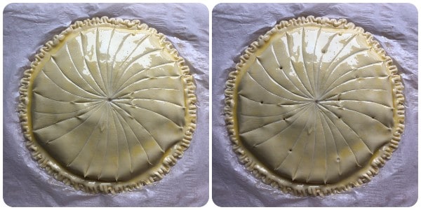 Finally, use the skewer tip to make holes here and there that will allow air to escape during baking. This way, the Galette will maintain its shape.
