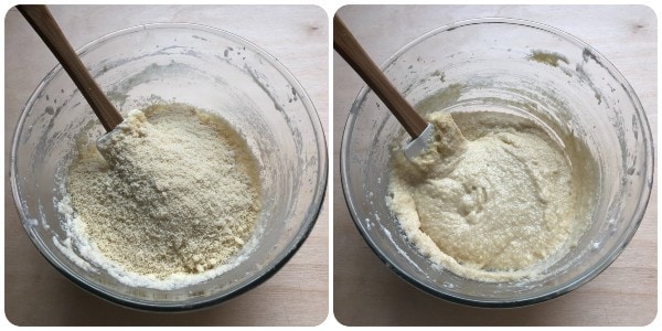 • Finally, pour the ground almond flour into the mixture and incorporate it perfectly with a spatula: it will result in a smooth and creamy mixture.