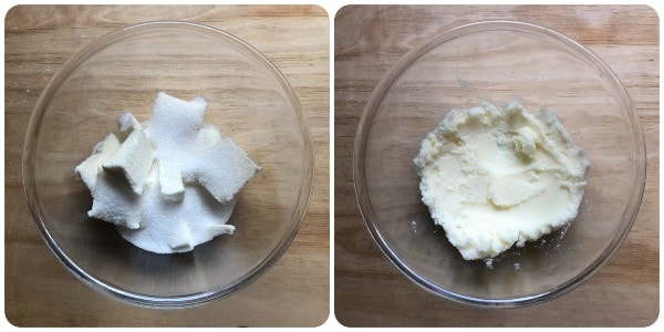 In a bowl, put the butter in pieces and the sugar and work with a spoon until they are perfectly blended.