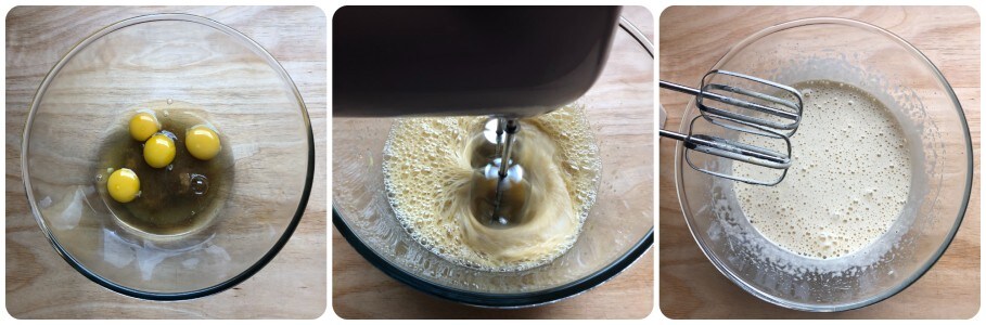 In a large bowl, place the brown sugar and eggs and beat them with an electric mixer until the mixture is light and fluffy.