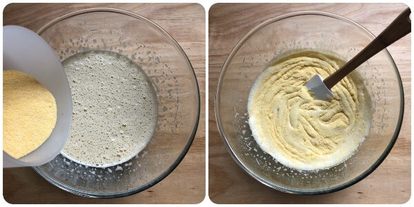 Add the fine cornmeal and incorporate it with a spatula. If you don’t have fine cornmeal, process regular cornmeal in a food processor to make it finer.