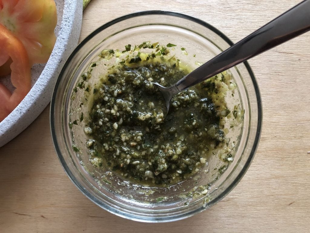 Let the gourmet green tomatoes marinade for about ten minutes at room temperature before tasting them. You can prepare the sauce in advance, but I recommend dressing the tomatoes just before serving, to avoid the salt making them release too much water. Enjoy! Paola