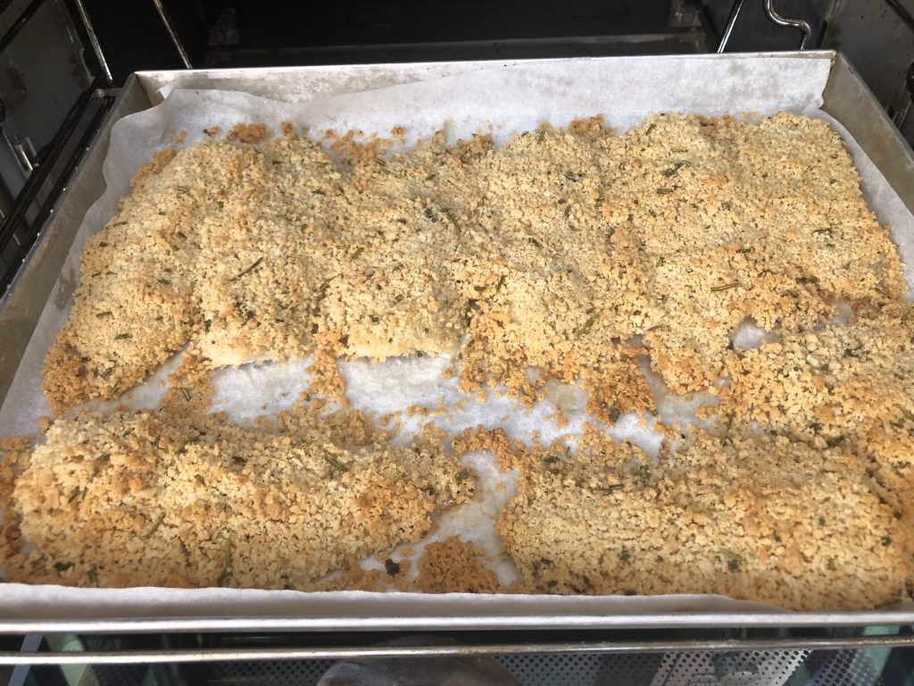 About ten minutes of preparation, just over a quarter of an hour of cooking, and you’ll be ready to serve this delicious tray of gratinated cod. I assure you that those fillets will be a hit. The super crunchy coating makes them sooooo appetizing. Even kids will love them.