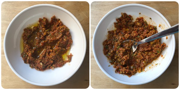 Transfer the pesto to a small bowl and dilute it to taste with more oil until reaching the desired consistency.