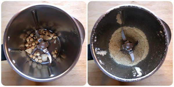 • Put the cheese in pieces and the peeled hazelnuts into the bowl and pulse for 8 seconds at speed 8.