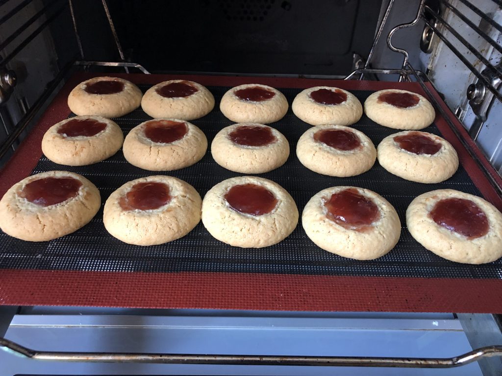 Bake the jam and coconut cookies in a preheated conventional oven at 356°F for 15 minutes. Remove from the oven and let them cool completely before touching them. Just out of the oven they are very delicate; they harden as they cool. Enjoy! Paola