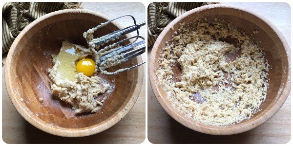 Then add the egg and incorporate it, still using the beaters.