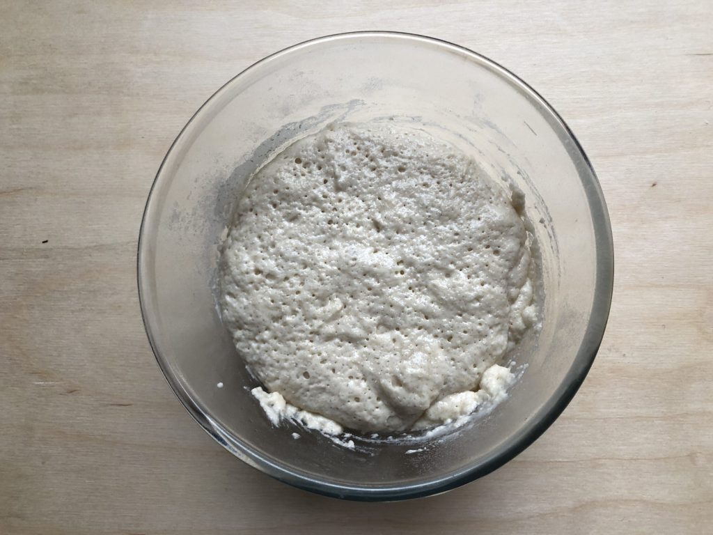 Transfer it to a large bowl, cover with plastic wrap, and let it rise until the volume doubles in a warm place away from drafts: rising time depends greatly on the ambient temperature and can vary from two to three hours.