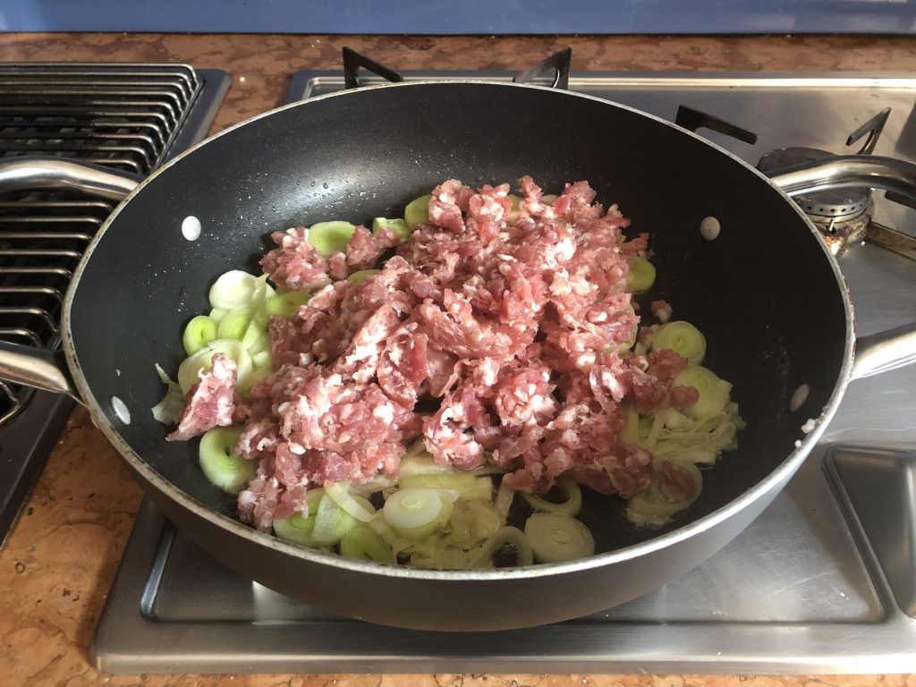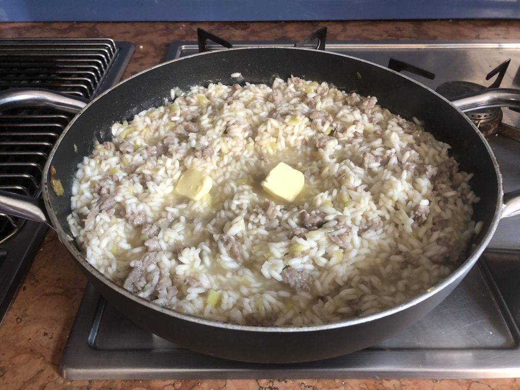 Preparation of Leek and Sausage Risotto