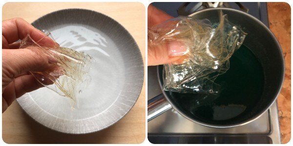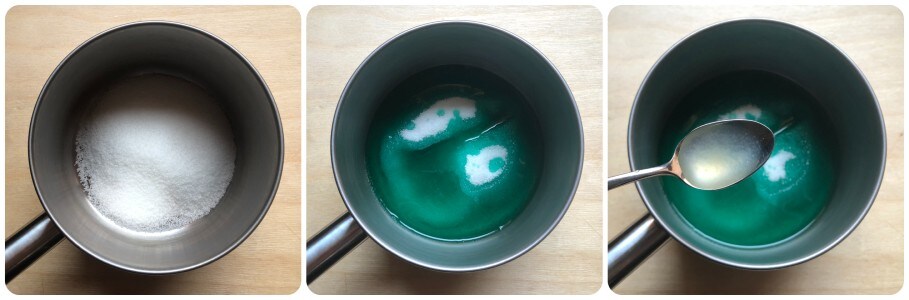 When the sugar has completely dissolved, squeeze the gelatin and add it to the mixture.