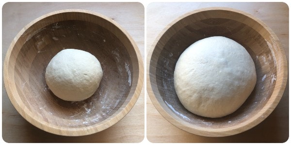 Put the dough back in the bowl, cover with plastic wrap, and let it rise until it doubles in volume in a warm place away from drafts. The rising time depends a lot on the temperature of the environment and can range from two to three hours.