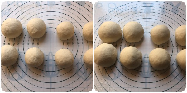 Shape each piece into a ball. Cover them with a tea towel and let them rest for another hour.