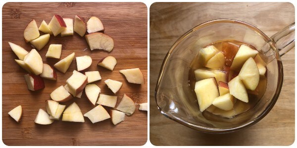 Wash the apple, remove the core, cut it into pieces, and also put it in the pitcher.