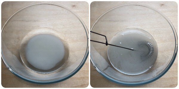 Pour the warm water into a large bowl, add the sugar, and mix with a small hand whisk until it is completely dissolved.