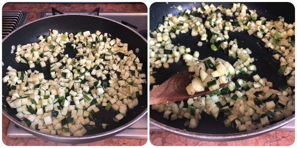 Cook the pasta in plenty of salted boiling water; drain it al dente, saving some of its cooking water, and transfer it to the pan with the zucchini.
