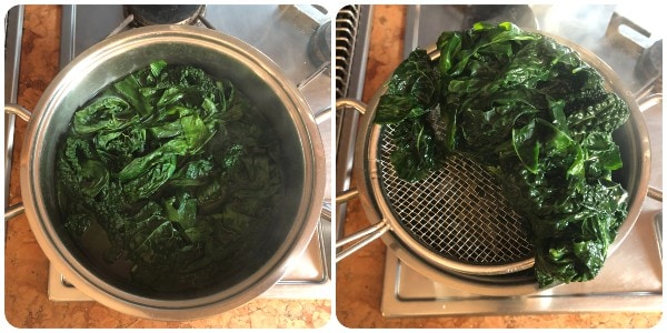 Clean the Tuscan kale leaves by removing the tough central rib: there’s a little trick to do it effortlessly. If you don’t know it, check HERE.