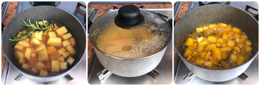 Bring to heat, cover, and boil for about half an hour, stirring occasionally.