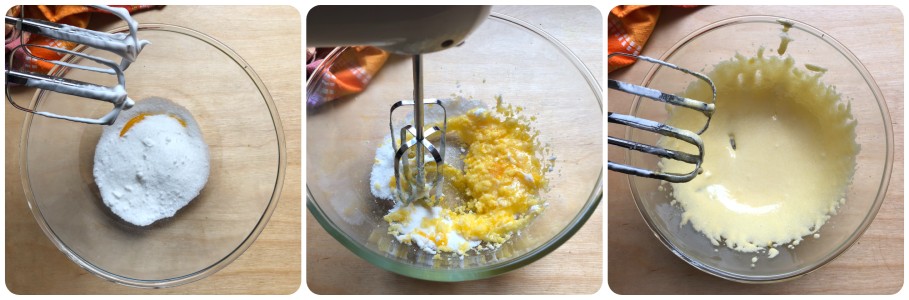 Add the remaining sugar to the yolks and beat them for a long time with the electric beaters until you get a light and frothy mixture.