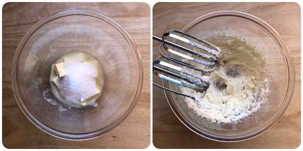 Put the softened butter in a bowl with the sugar and work them with an electric whisk.