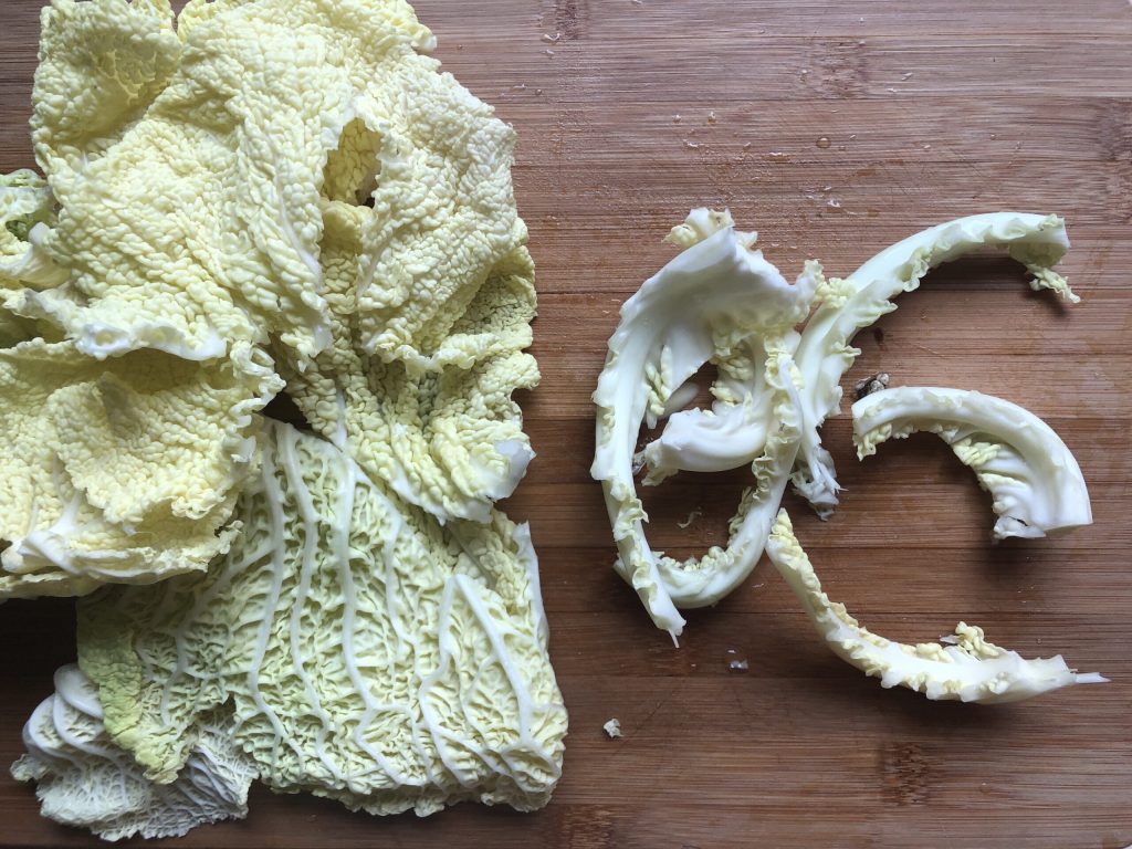 • Remove the central stem from the Savoy cabbage leaves as well.