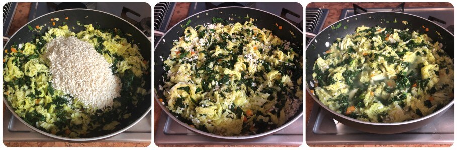 Preparation of Rice with Savoy Cabbage and Black Kale